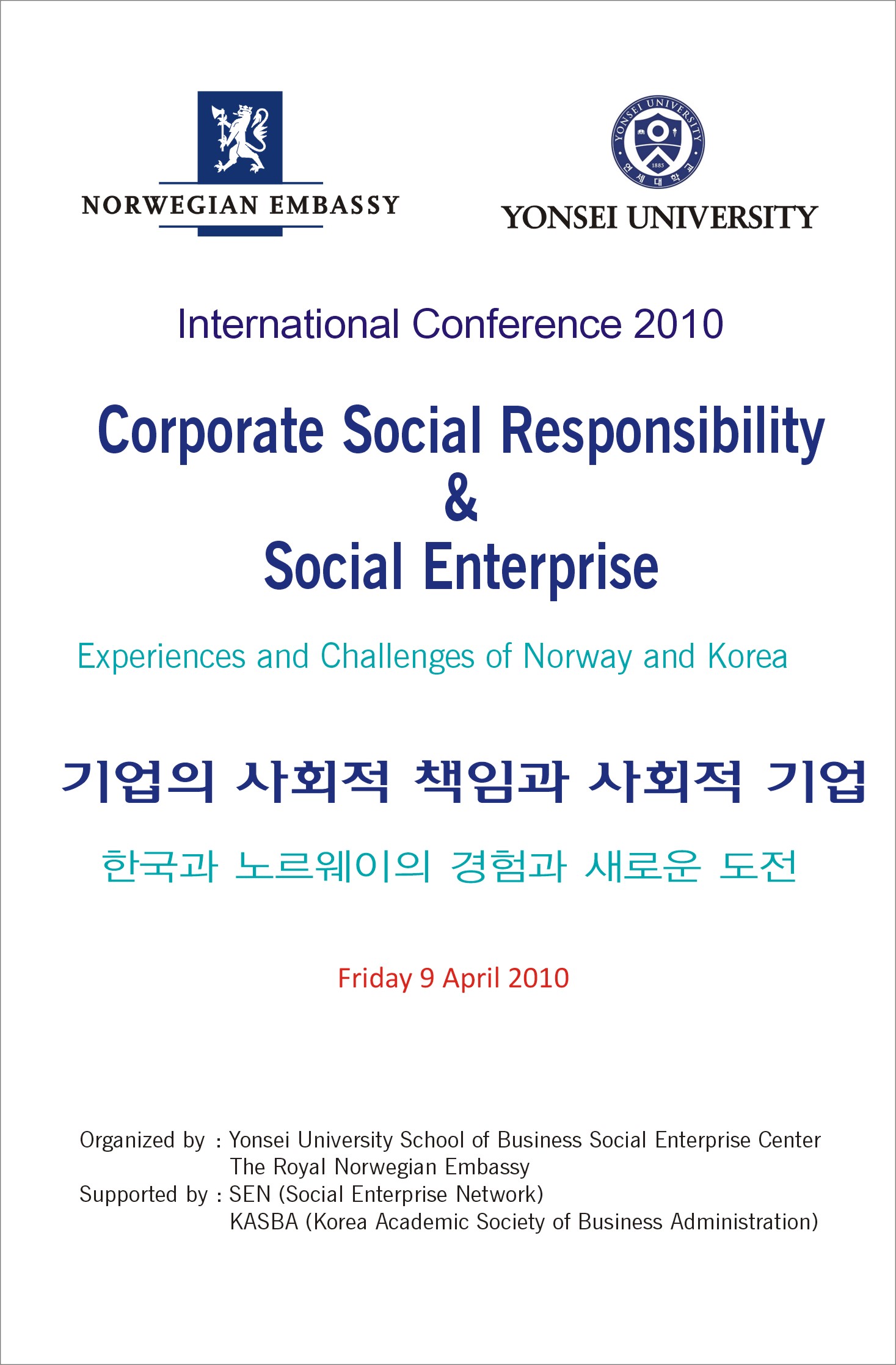 [연세대 경영연구소] 국제컨퍼런스-기업의 사회적책임과 사회적기업