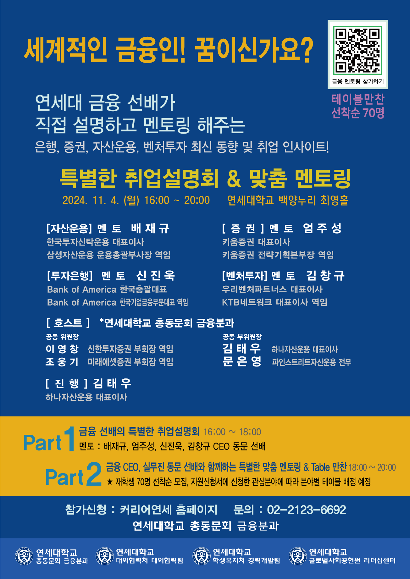 참가신청: 커리어연세 홈페이지/문의: 02-2123-6692