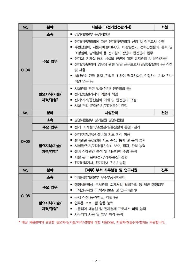 기술직 - 중부권(안산, 천안, 서천) : 3명