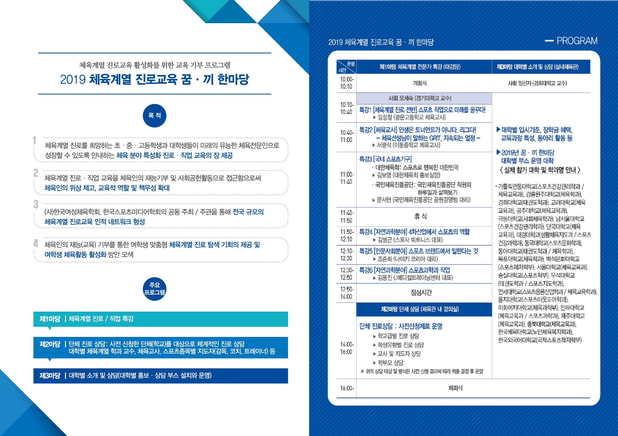 2019년 체육계열 진로교육 꿈끼한마당 최종 리플릿(안내)