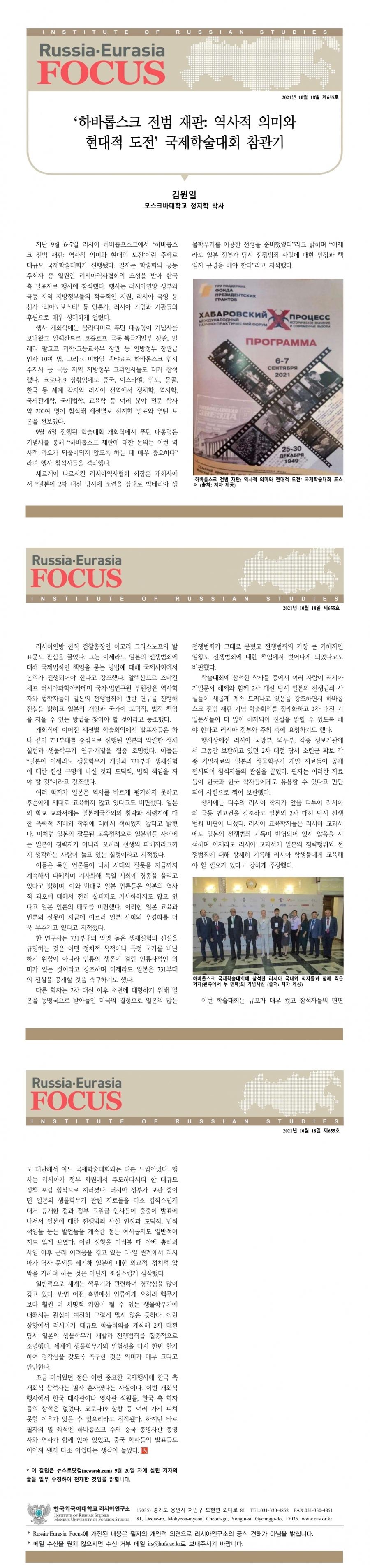 제655호 ‘하바롭스크 전범 재판: 역사적 의미와 현대적 도전’ 국제학술대회 참관기