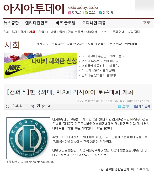[언론보도]한국외대, 제2회 러시아어 토론대회 개최-아시아투데이(2012.05.17)