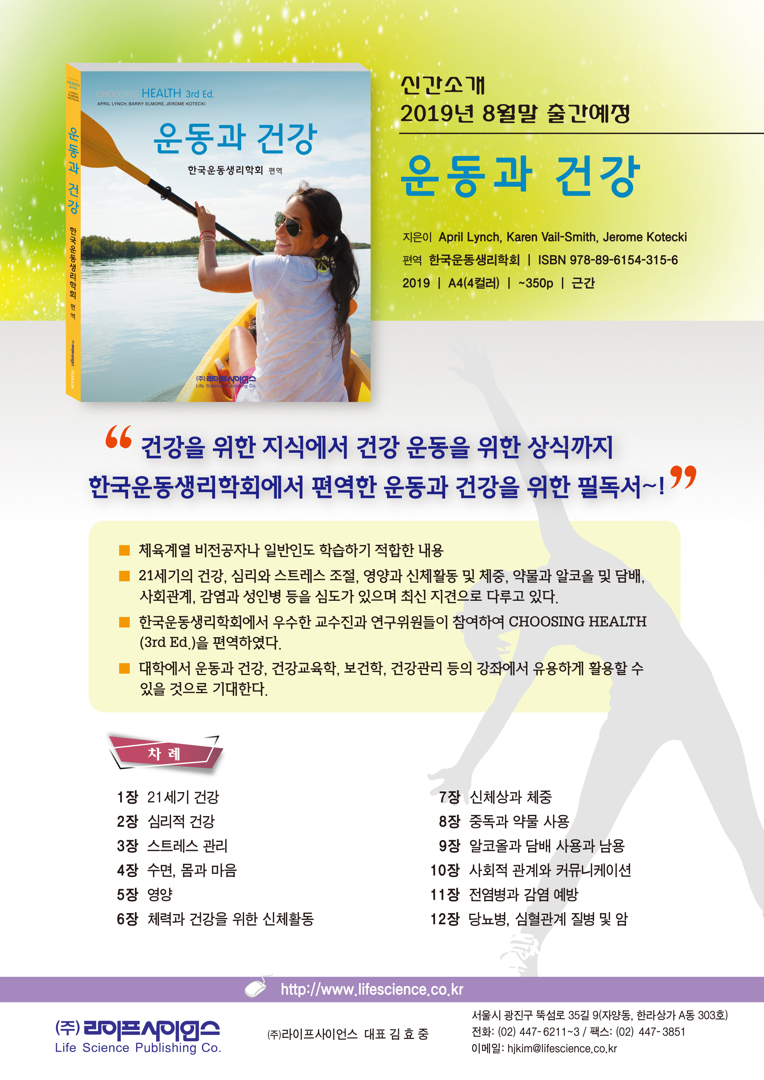 한국운동생리학회에서 편역한 운동과 건강을 위한 필독서 운동과 건강” 3판이 8월 말에 라이프사이언스에서 출간 예정이어서 안내를 해드립니다.