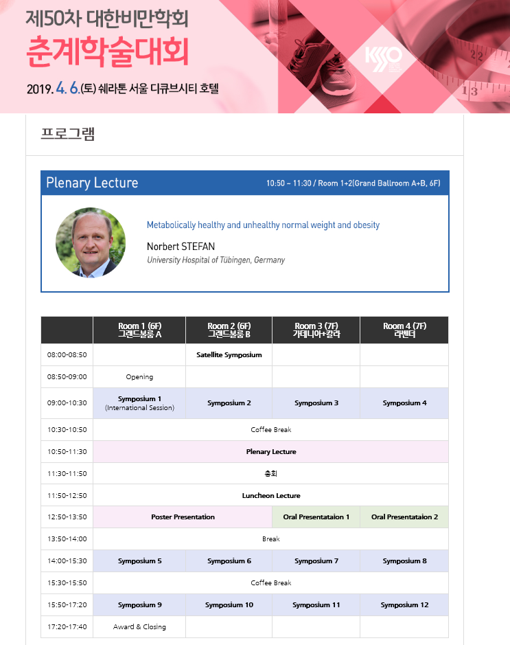 대한비만학회에서 50 춘계학술대회를 아래와 같이 개최합니다.