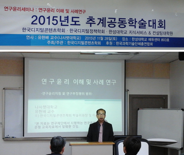 2015년 학술대회에서 연구윤리세미나를 진행하였습니다.