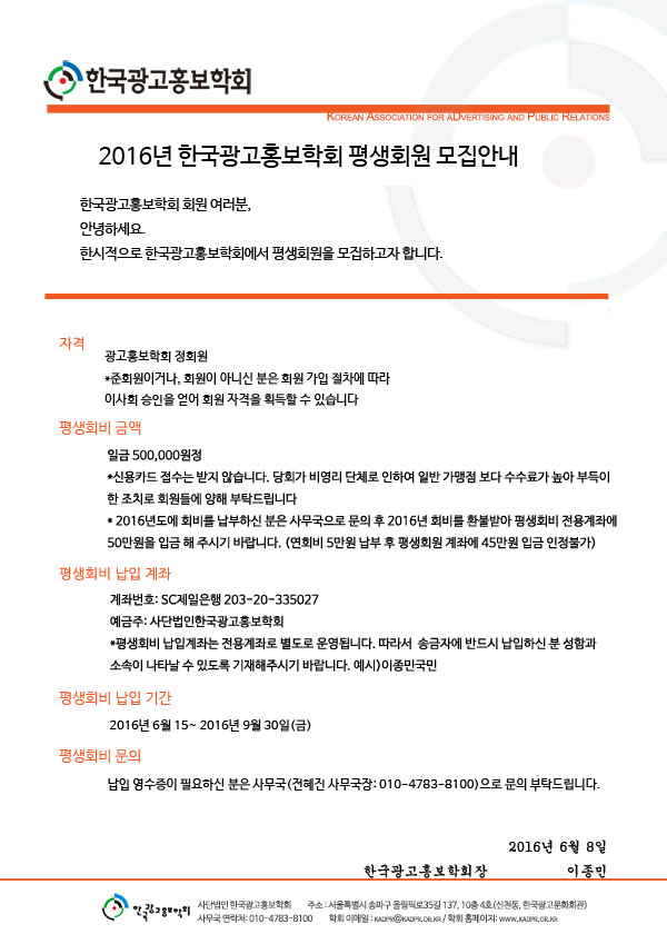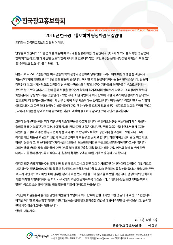 한국광고홍보학회 2016 봄철정기학술대회 일정안내