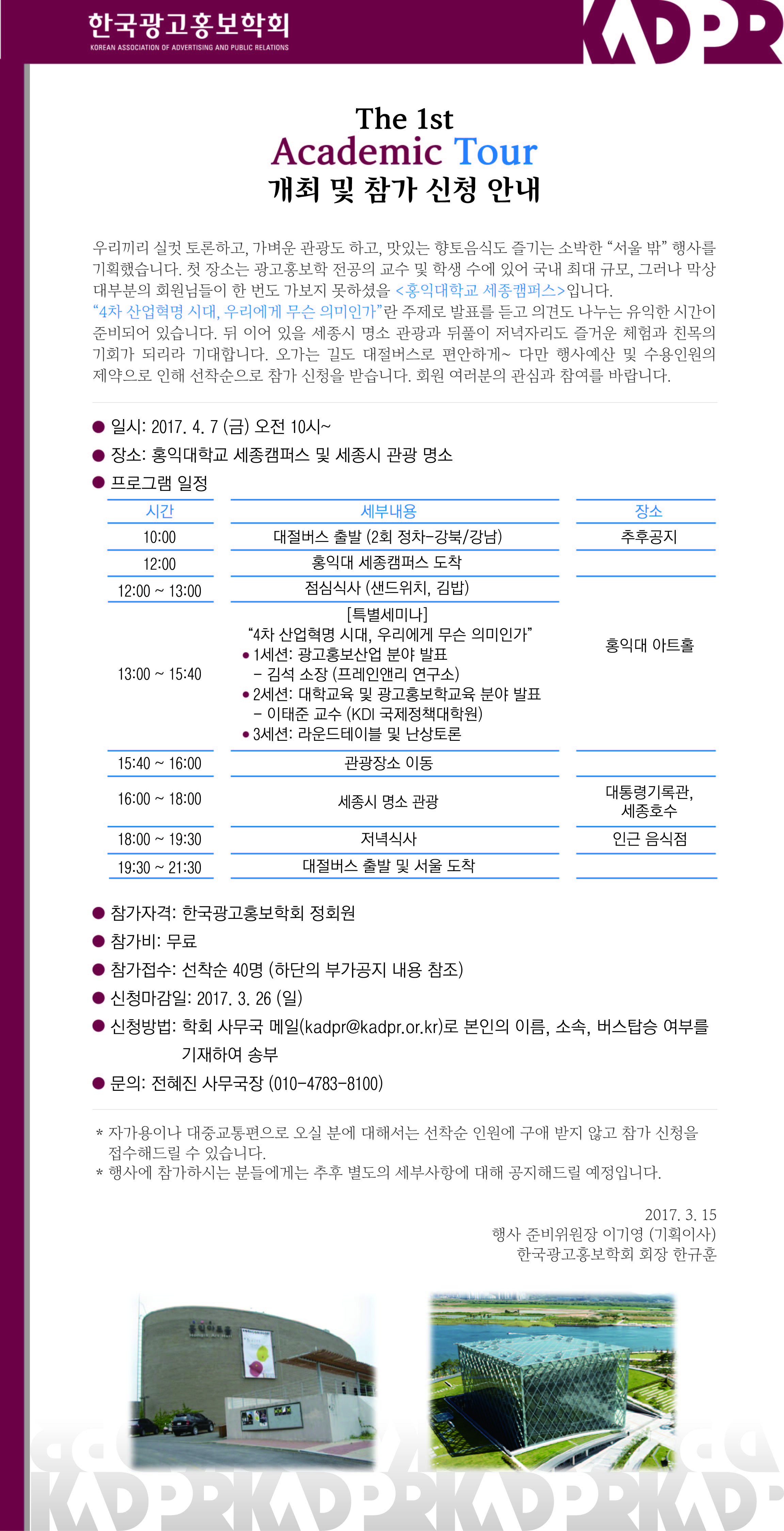 제1회 <아카데믹 투어> 개최 및 참가신청 안내