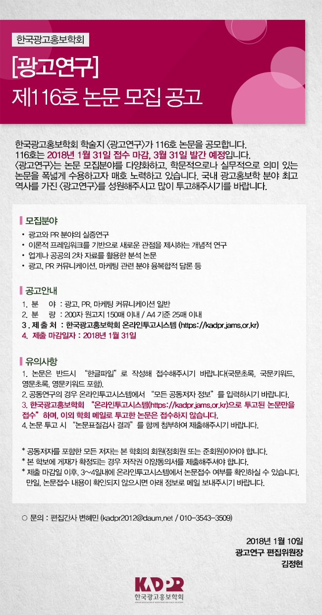 [KADPR] 광고연구 제116호 논문 모집 공고