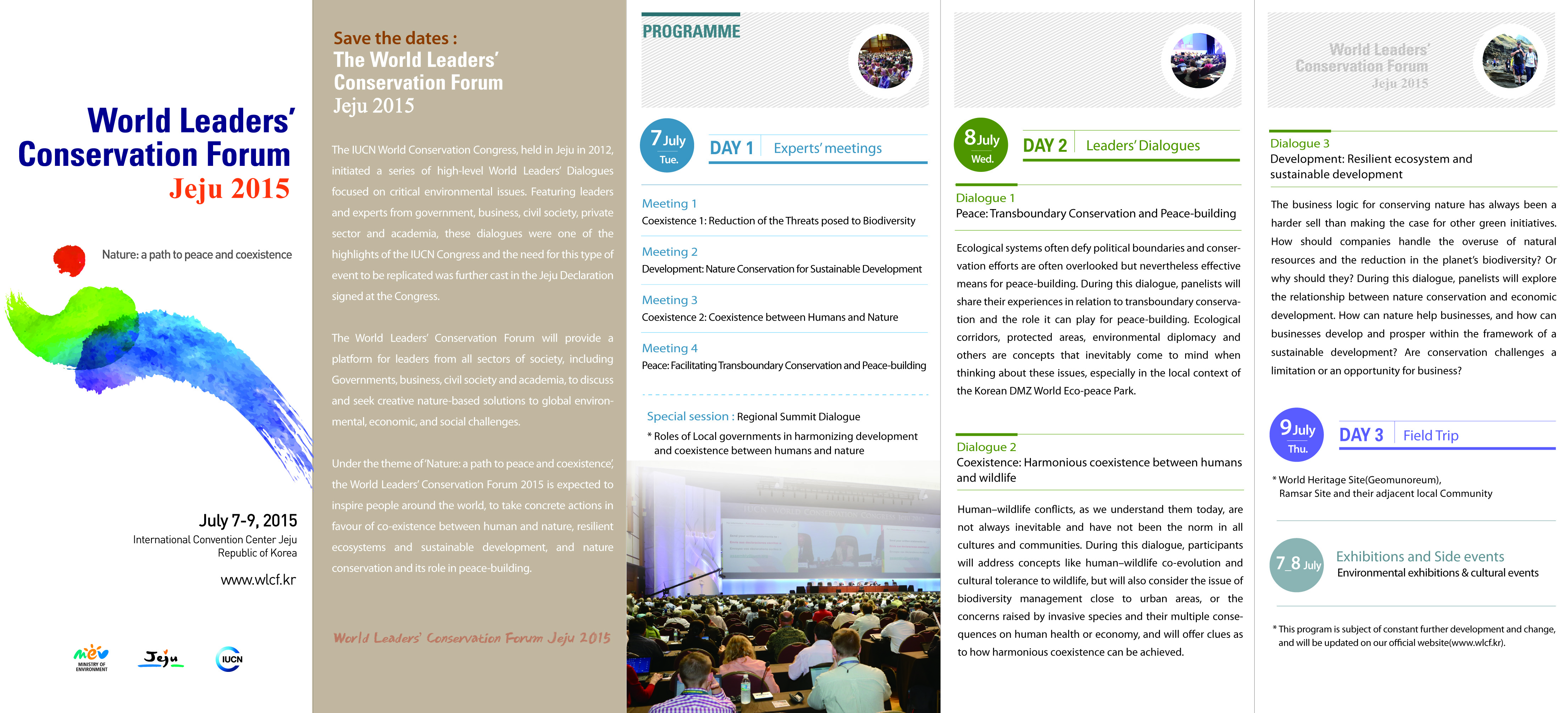 세계리더스보전포럼은 환경, 경제, 사회를 포괄하는 다양한 문제에 대해 자연에 기반한 해결책을 찾고자 하는 환경 회의로서 사람과 자연의 공존, 건전한 생태계와 지속가능한 발전, 평화를 위한 자연의 역할에 대해 해법을 찾는 대화의 장이 될 것 입니다.