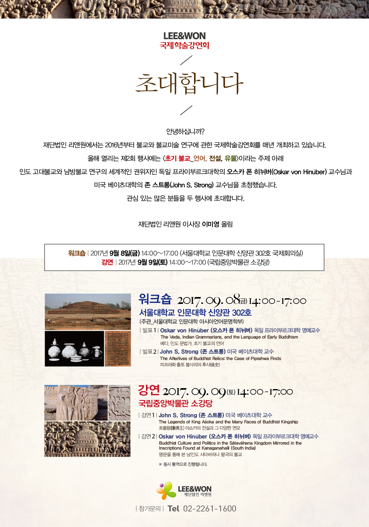 서울대학교 아시아언어문명학부에서 재단법인 리앤원과 함께 <초기 불교_언어, 전설, 유물>라는 주제로 워크숍을 개최하여 여러 선생님들을 모시고자 합니다.