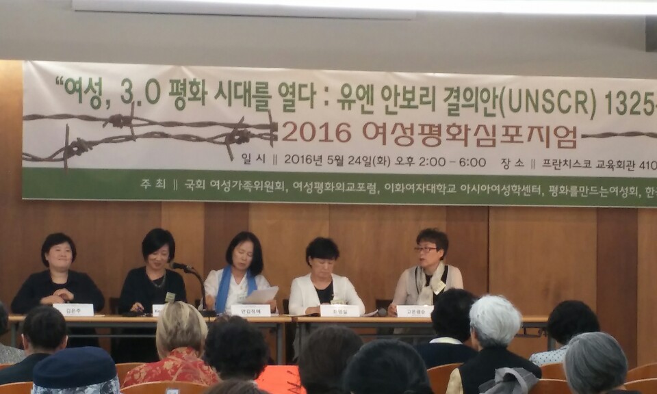 지난 5월 24일 서울 정동 프란치스코 회관에서 여성평화심포지엄이 열렸습니다. 여신협의 전공동대표이셨던 최영실 성공회대 명예교수님이 '여성과 평화협정'에 관한 발제를 하셨고, 한반도 평화를 바라는 국내외 여성들이 모여 뜨겁게 토론하는 시간이었습니다.