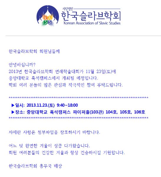한국슬라브학회 연례학술대회(2013.11.23)