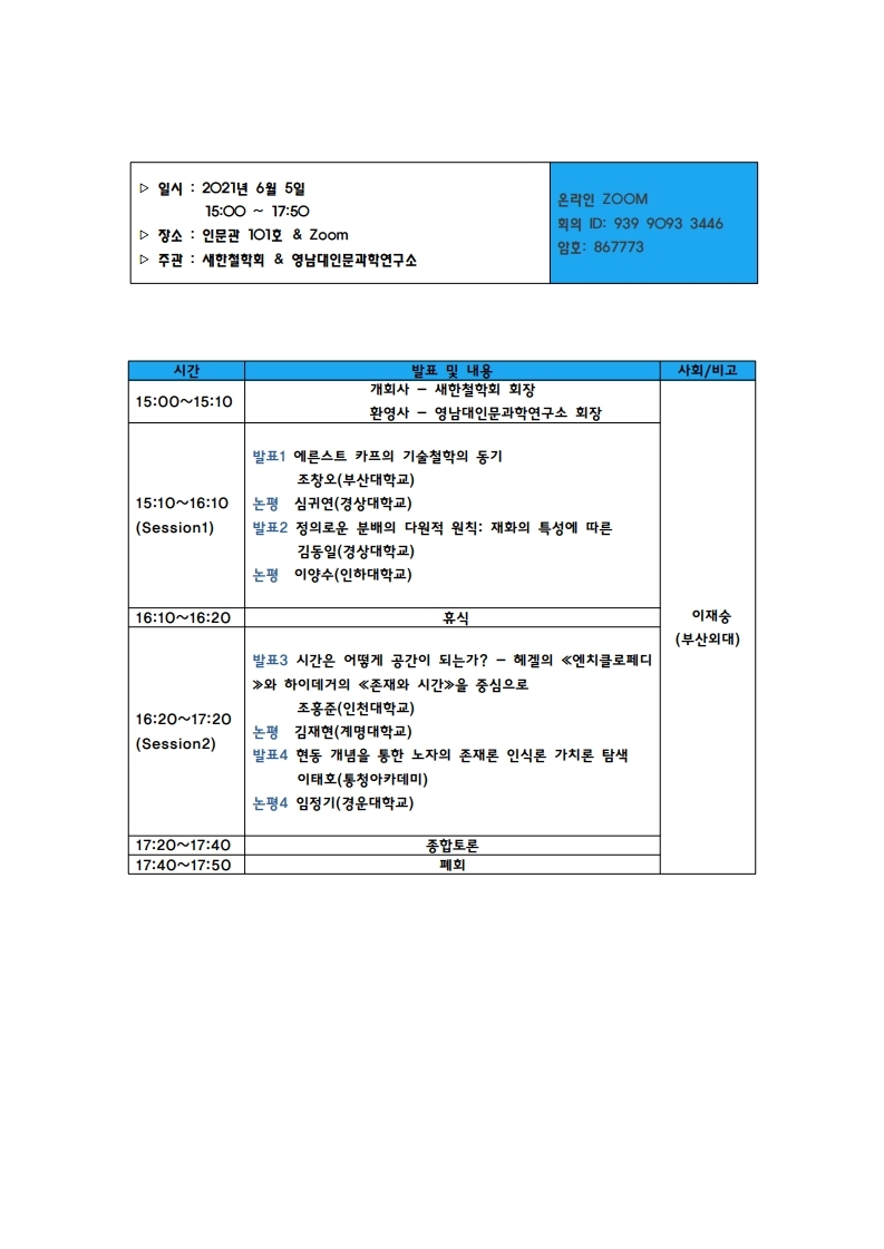 ▷ 주관 : 새한철학회 & 영남대인문과학연구소