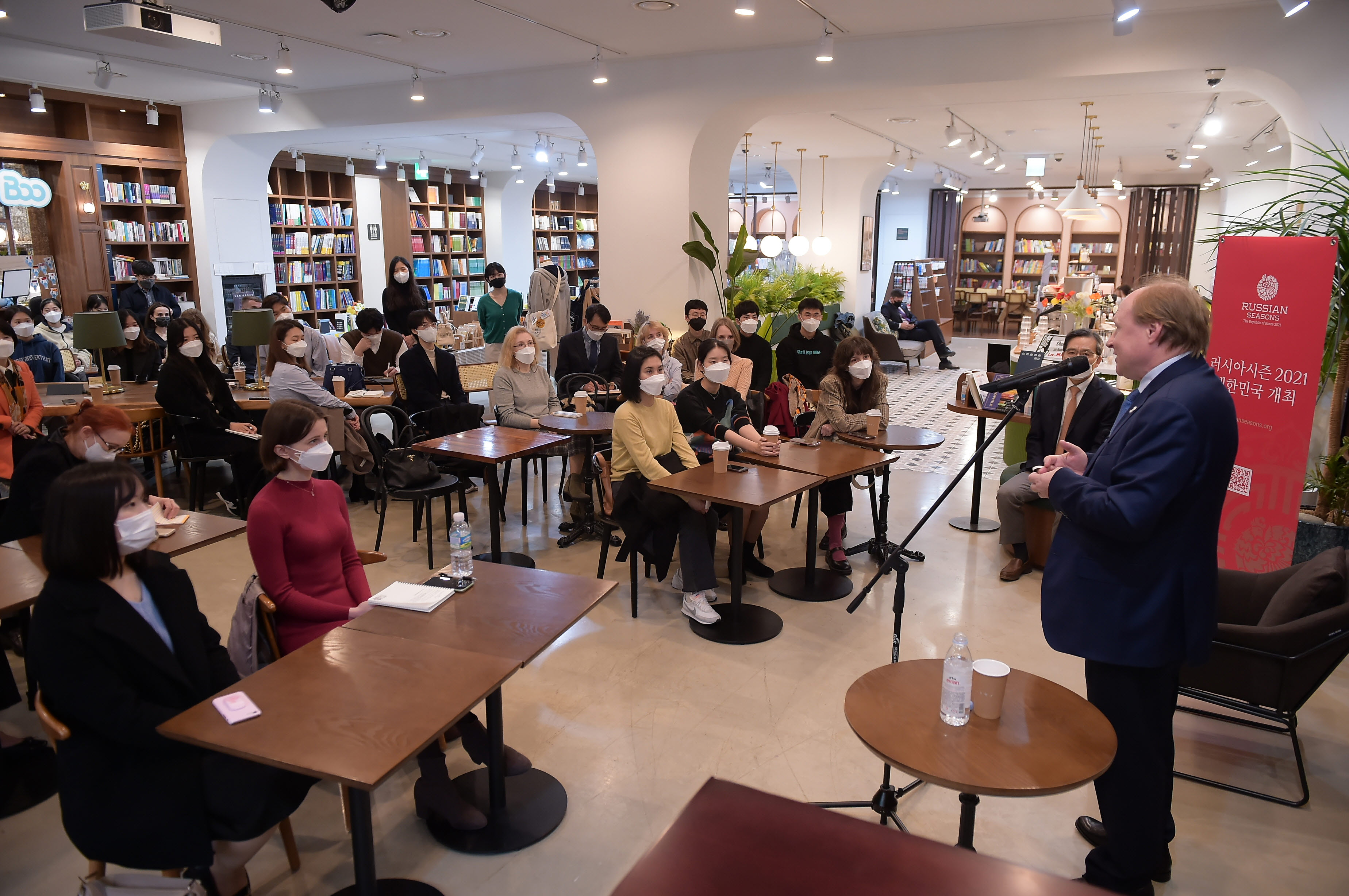 강연 참석자들은 러시아 문화와 러시아어의 보다 적극적인 보급을 위해 한국 내 러시아문화원 설립이 필요하며 한국 -러시아 간 상호문화 교류의 효율성 증진을 가능케 하는 제도적 장치 또한 마련되어야 한다고 언급하면서 이에 대한 톨스토이 보좌관의 의견을 청해 들었다 .