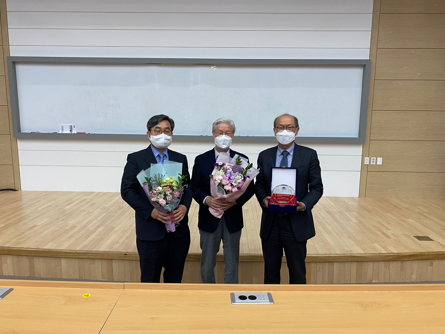 (왼쪽부터) 이종성 회장님(제52대), 백승균 이사장님, 김용일 전임 회장님(제51대)