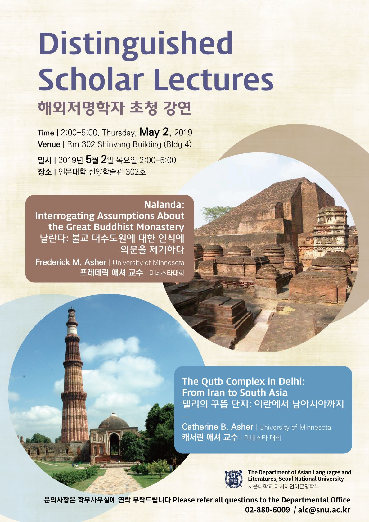 서울대학교 아시아언어문명학부 인도 전공에서 2019년 저명학자 특강에 대해  안내드립니다.