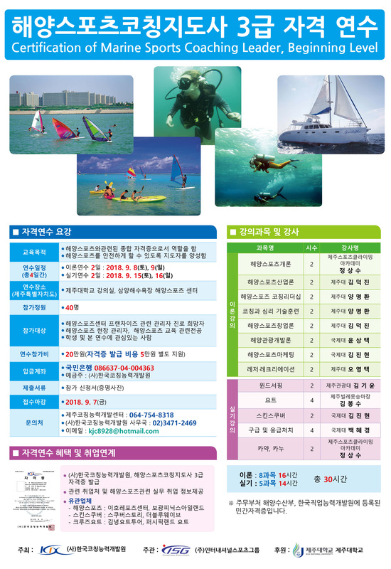 2018 해양스포츠코칭지도사 3급 자격 연수