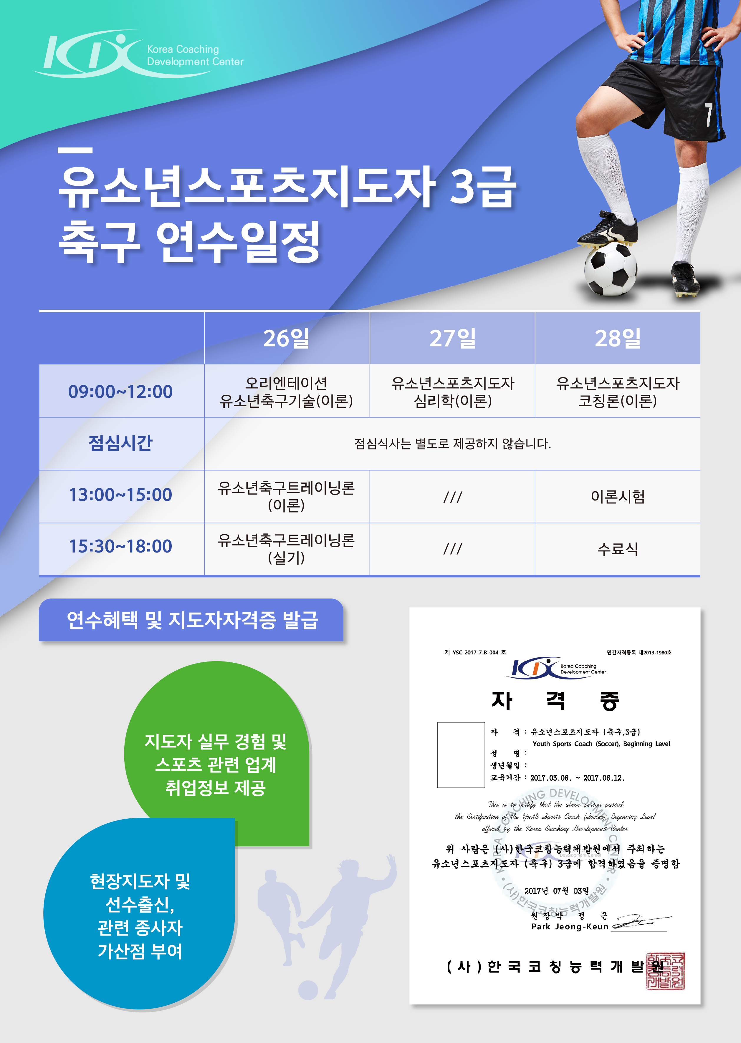 2017 유소년스포츠지도자(축구) 3급 자격연수안내