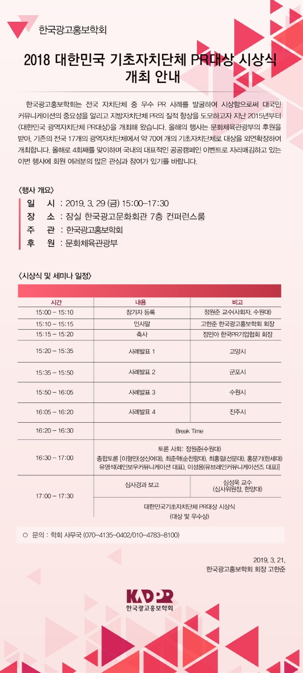 [KADPR] 2018 대한민국 기초자치단체 PR대상 시상식 개최 안내