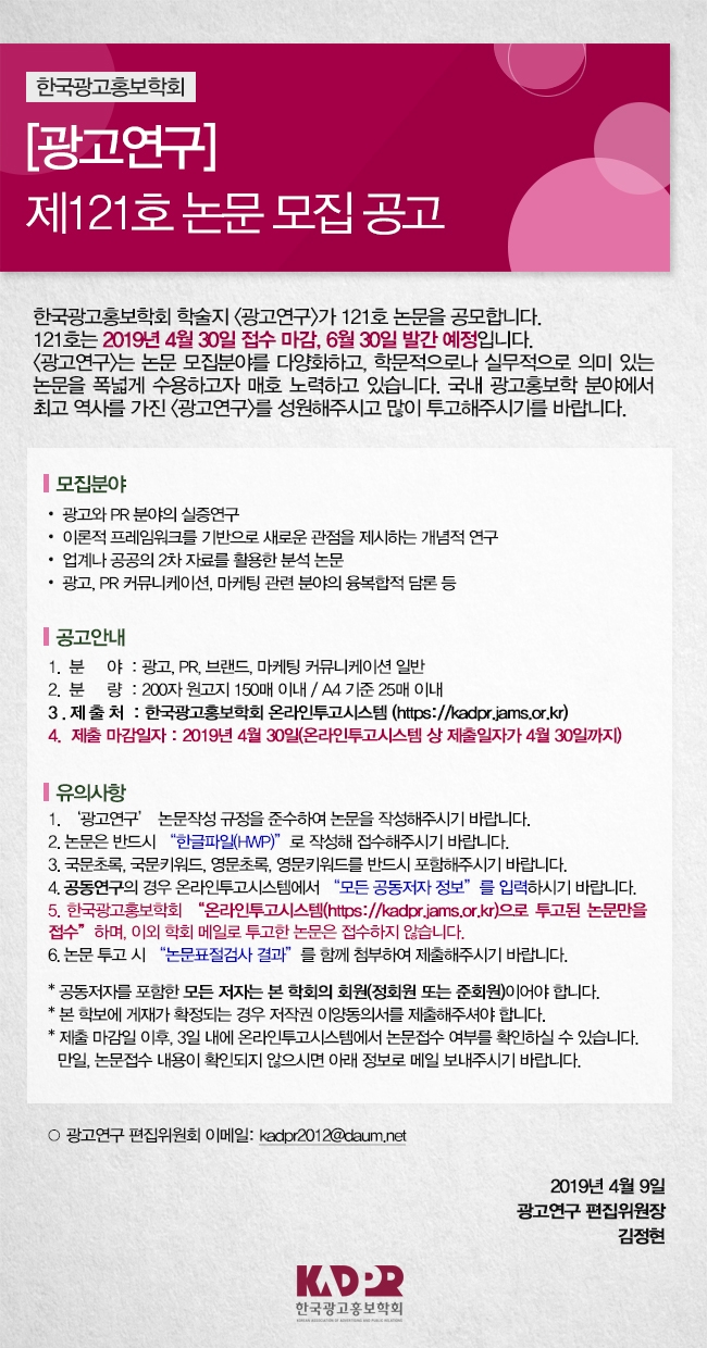 [KADPR] 광고연구 제121호 논문 모집 공고