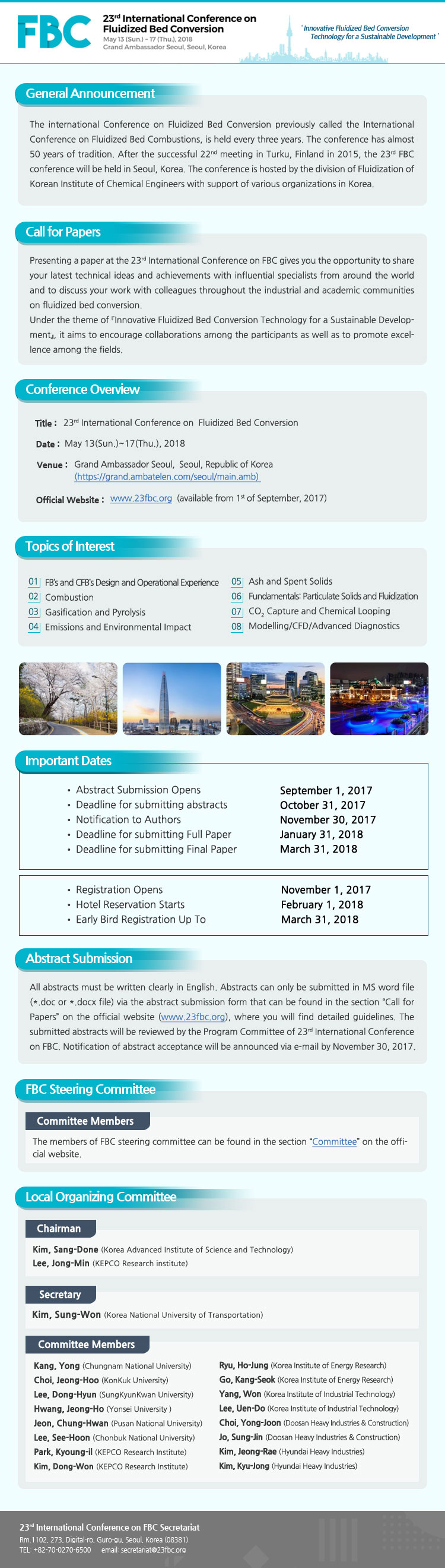 International Conference on FBC (Fluidized Bed Conversion) 사무국 입니다.