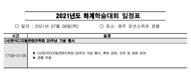 2021년 한국디지털콘텐츠학회 학술발표대회 및 대학생논문경진대회 프로그램 공지 드리니