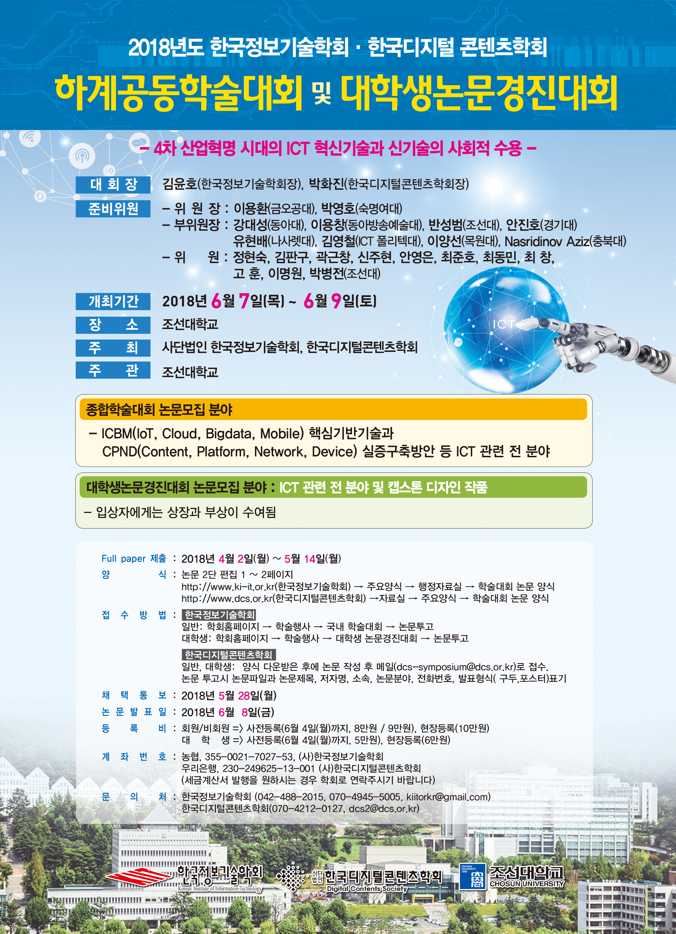 <2018년도 한국정보기술학회, 한국디지턴콘텐츠학회 하계공동학술대회 및 대학생논문경진대회  안내>