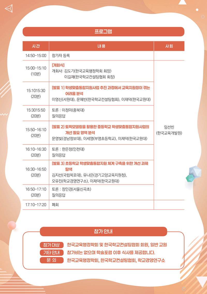 6. 공동 주최:  한국교육행정학회, 한국학교컨설팅협회, 학교경영연구소