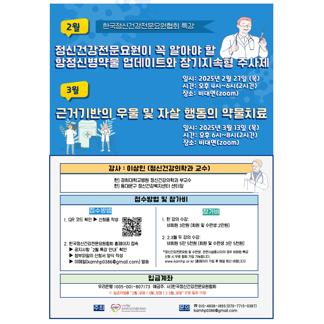 한국정신건강전문요원협회 2025년 2월 및 3월 특강을 개최