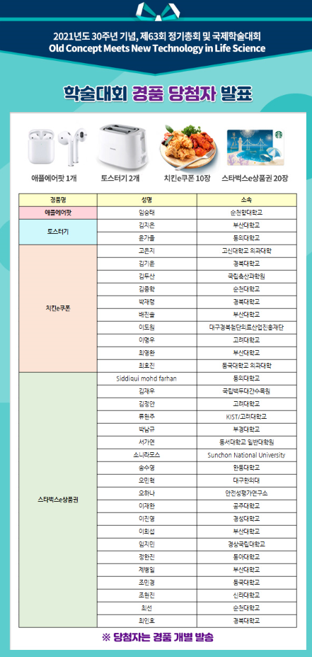 * 2021 학술대회 경품 추첨 당첨자 안내 *
