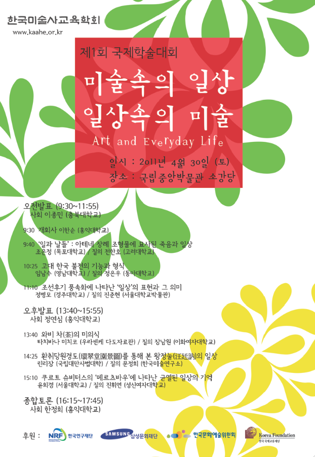 한국미술사교육학회에서는 ‘미술 속의 일상, 일상 속의 미술’이라는 제목 아래 국제학술대회를 개최합니다.