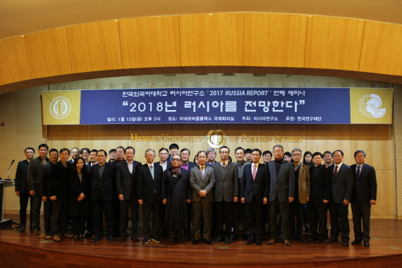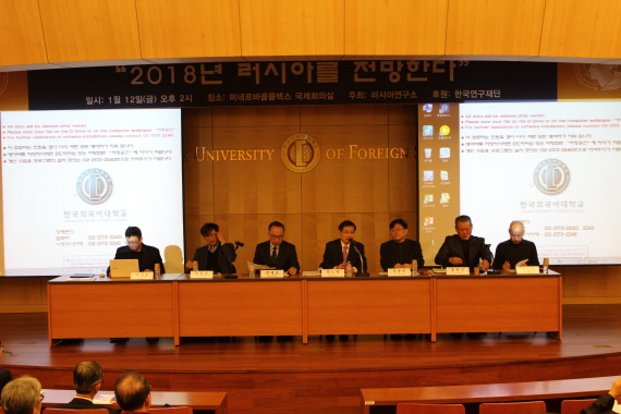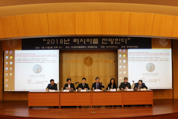 2018년 1월 12일(금) 우리연구소는 한국외대 서울캠퍼스 미네르바콤플렉스 국제회의실에서 연례보고서 RUSSIA REPORT 발행의 일환으로 “2018 러시아를 전망한다” 제하의 국내학술대회를 개최했다. 우리연구소의 2018년 첫 학술행사로서 본 회의에는 러시아 전문가와 학문후속세대 등 총 50여 명이 참석하여 성황을 이뤘다.
