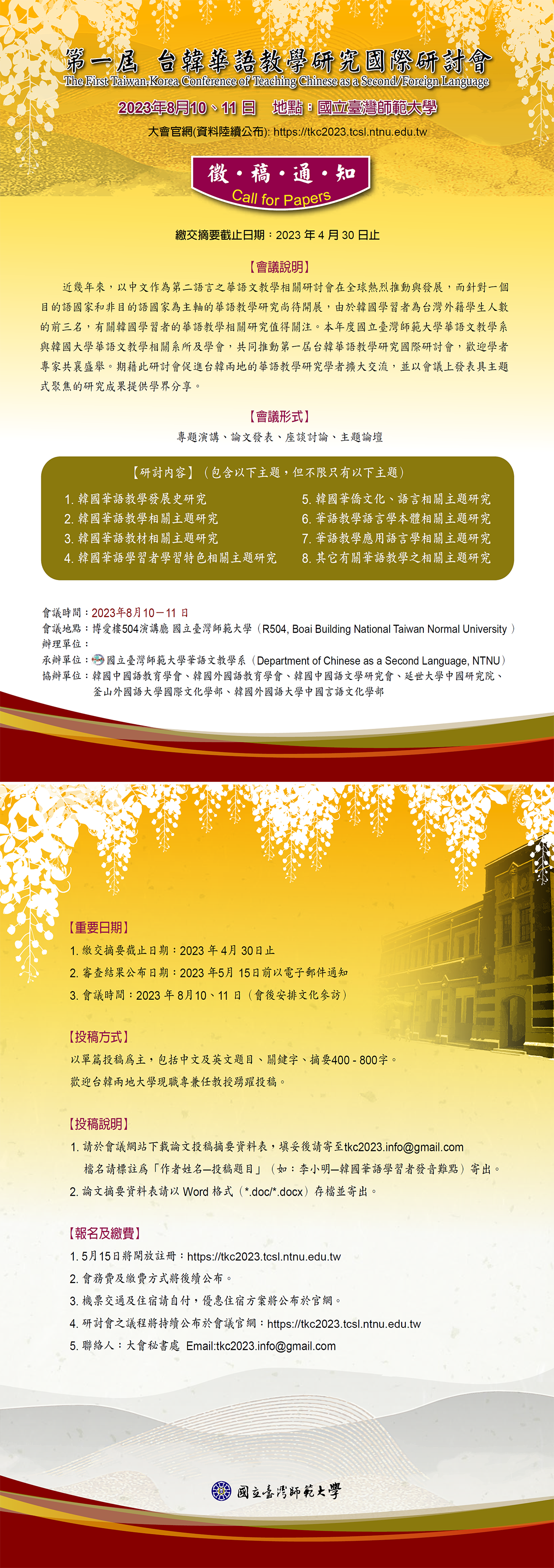 2023년 8월 10일-11일 양일 간 국립대만사범대학에서 개최되는