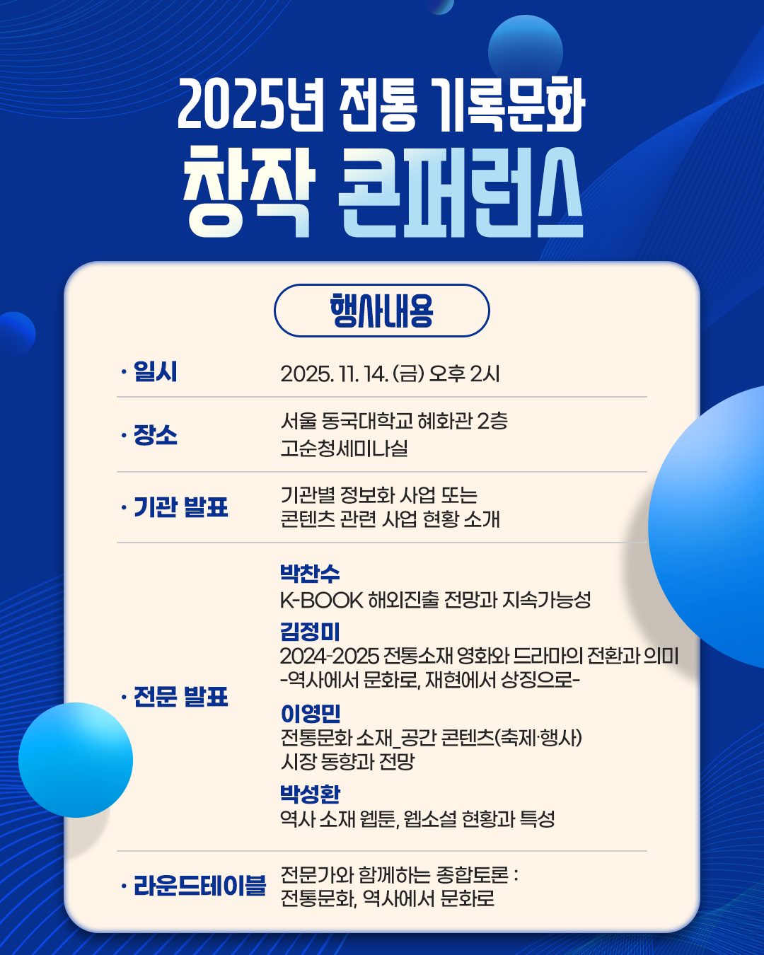 2025년 전통기록문화 창작 콘퍼런스 안내합니다