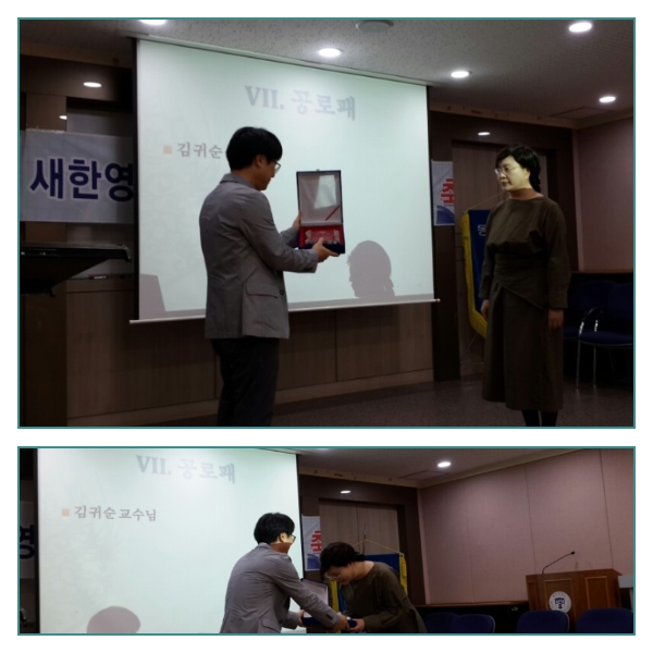 학회에서는 김귀순 교수님께 공로상으로 고마움을 전하게 되었습니다.