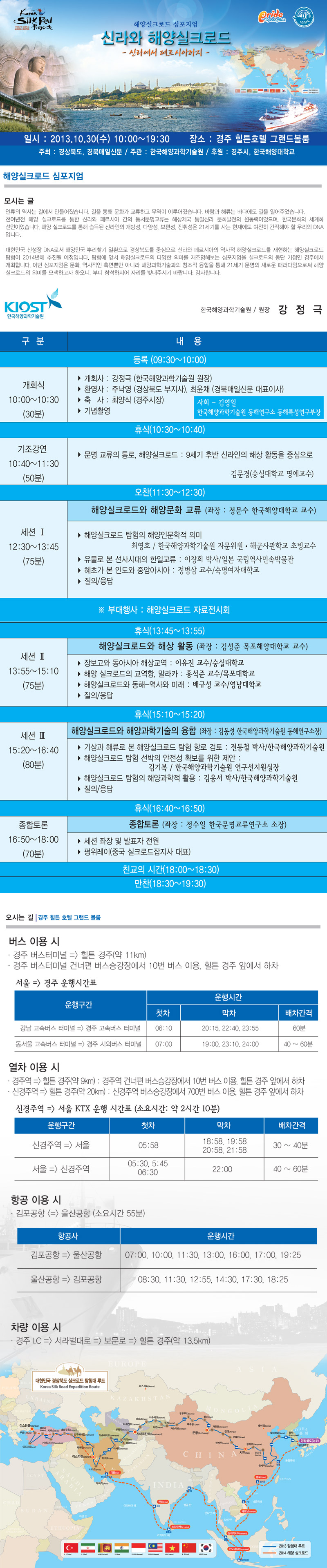 한국해양과학기술원 주관 <해양실크로드 심포지움> 안내