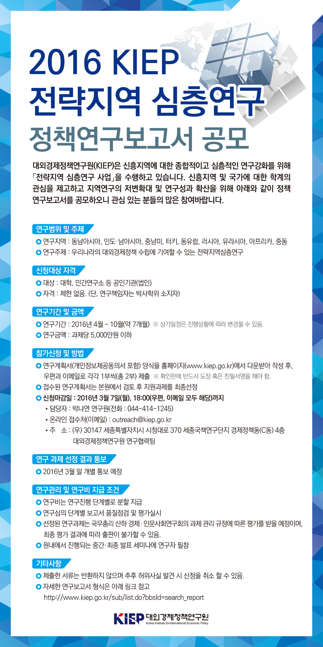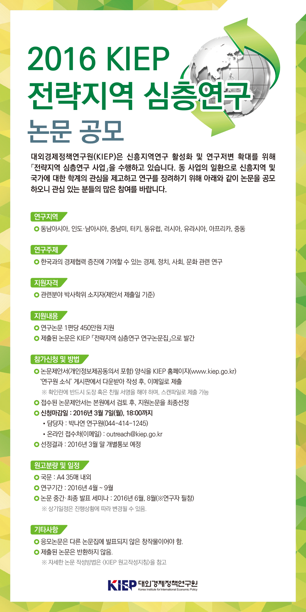 - 대외경제정책연구원(KIEP) 전략지역 심층연구 논문 및 정책연구보고서